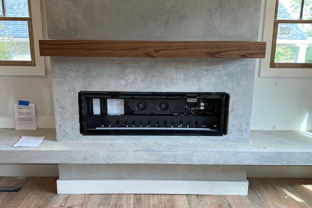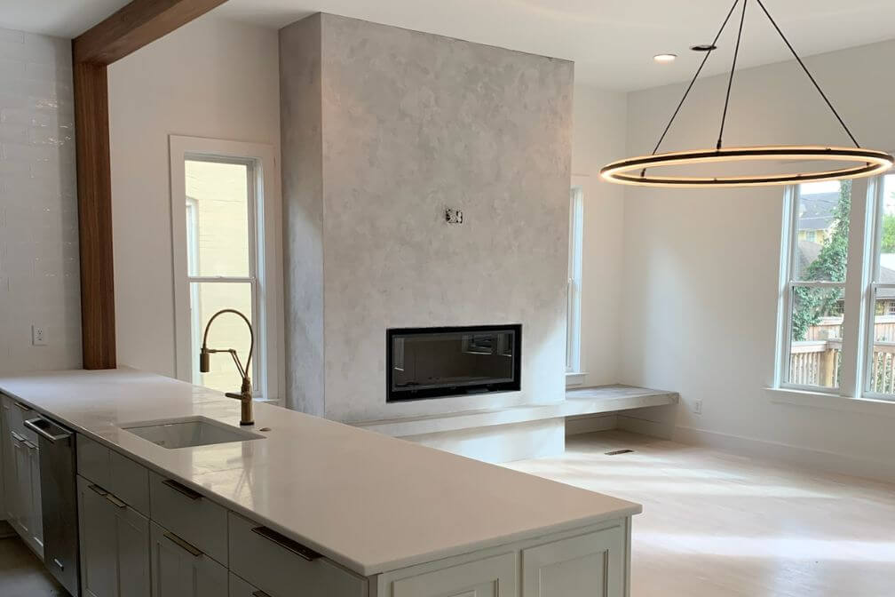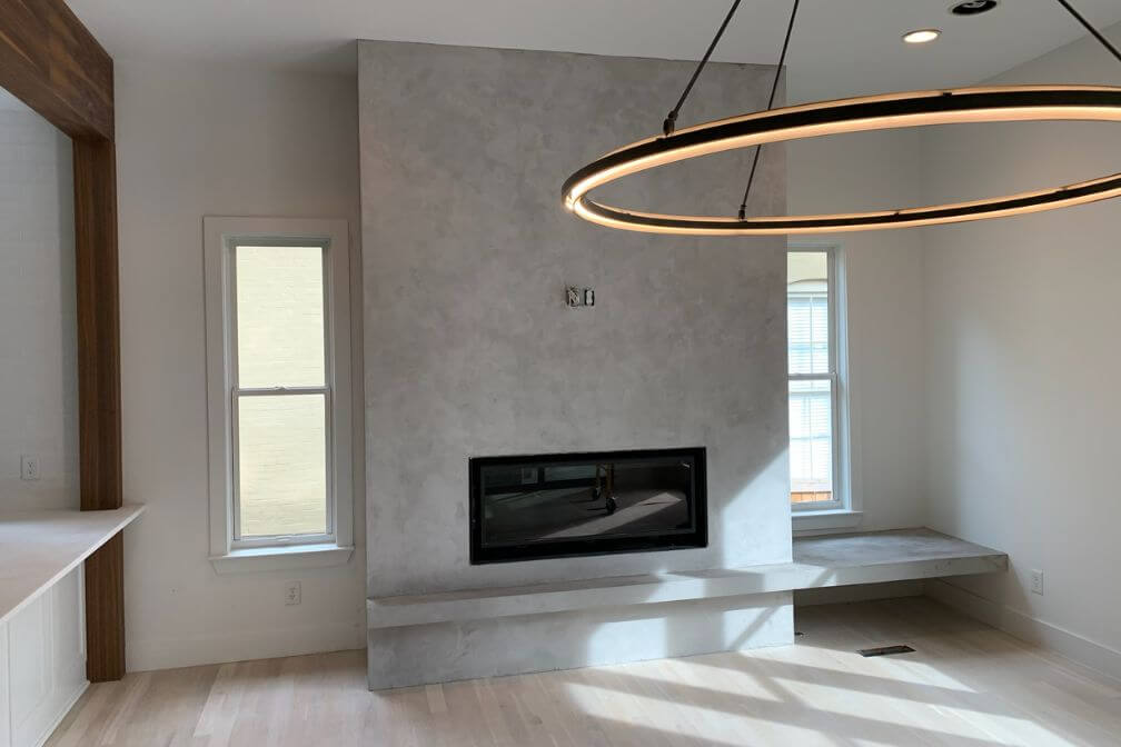 Micro-topping is an architectural surface available in a variety of natural colors. It is an ideal finish for floors, accent walls, fireplace surrounds, range hoods, and bathrooms. Replacing it looks great, clean and simple.