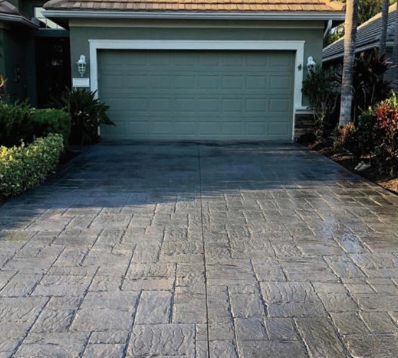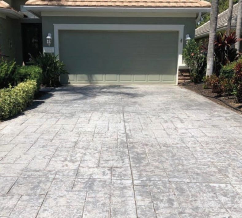 Stamped Rollcoat by Classic Concrete is a revolutionary cementitious overlay system applied to restore faded, stained, or discolored stamped or regular concrete to a like-new condition. Since Stamped Rollcoat is made with real cement and rolled on like paint, it provides a more natural concrete appearance over existing concrete surfaces compared to using colored sealers, paints, or stains. Our proprietary multi-step renewal process ensures your concrete’s unique color attributes are highlighted, restoring your concrete to its original beauty. We specialize in restoring color to driveways, walkways, patios, stairs, walkways, pool decks, and commercial spaces.